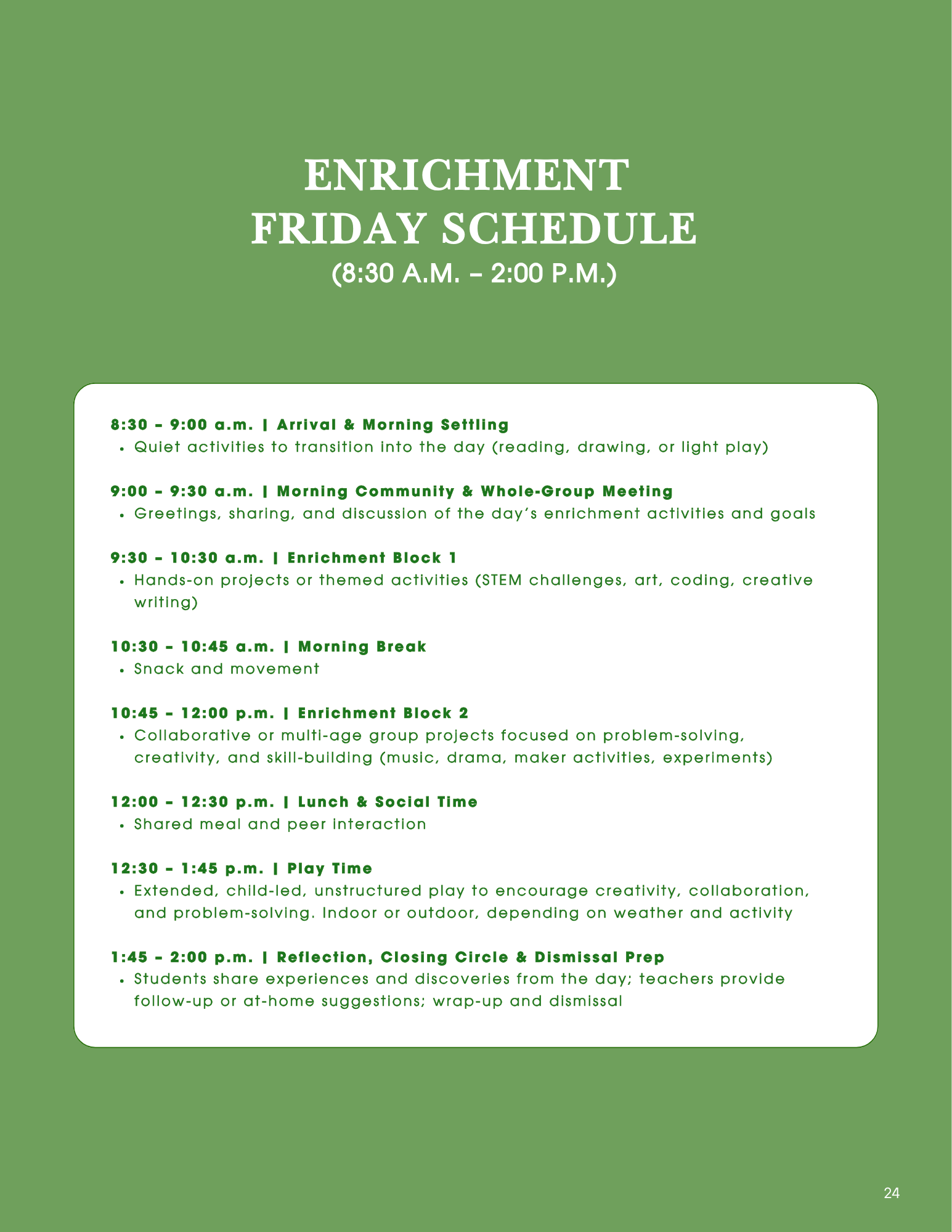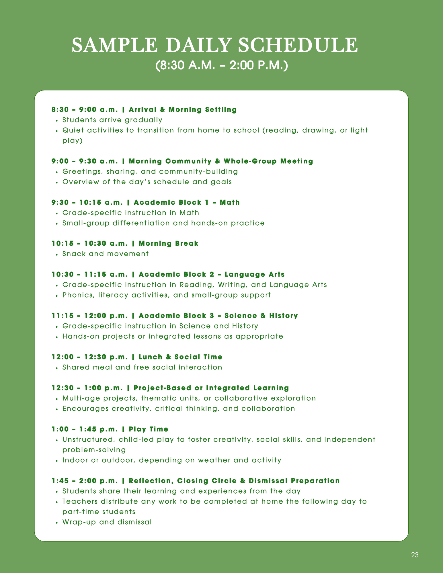 Parents will receive a full scope and sequence of all unit studies for the school year prior to the beginning of classes, providing clear insight into the topics and skills their children will explore.